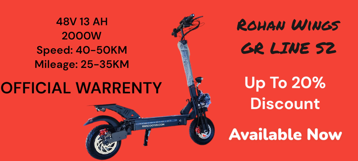 Rohan Wings S2 Tall Kick Scooter, 2000 Watts Motor, 48V 13A Battery, 25-30km Range, Foldable, Bluetooth Speaker, Removable Seat, Red Black